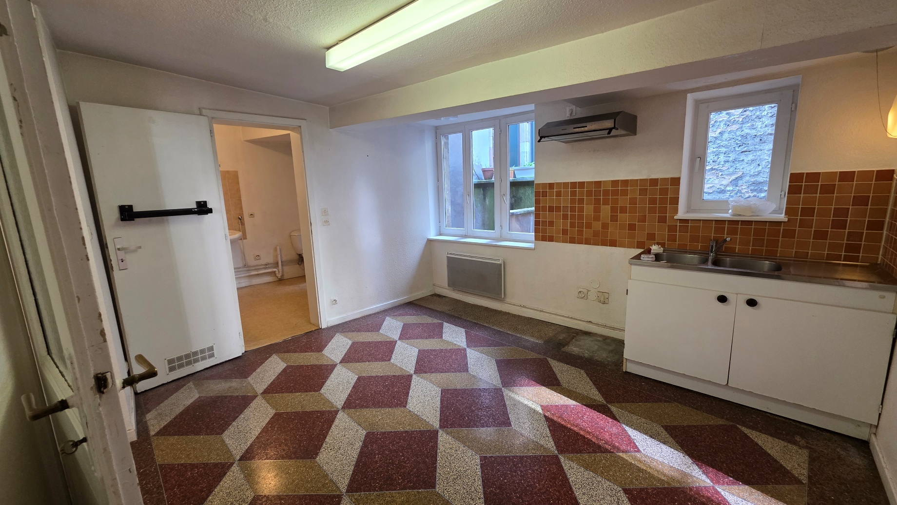 Chauffage électrique, branchement machine à laver prévu dans la salle de bains.