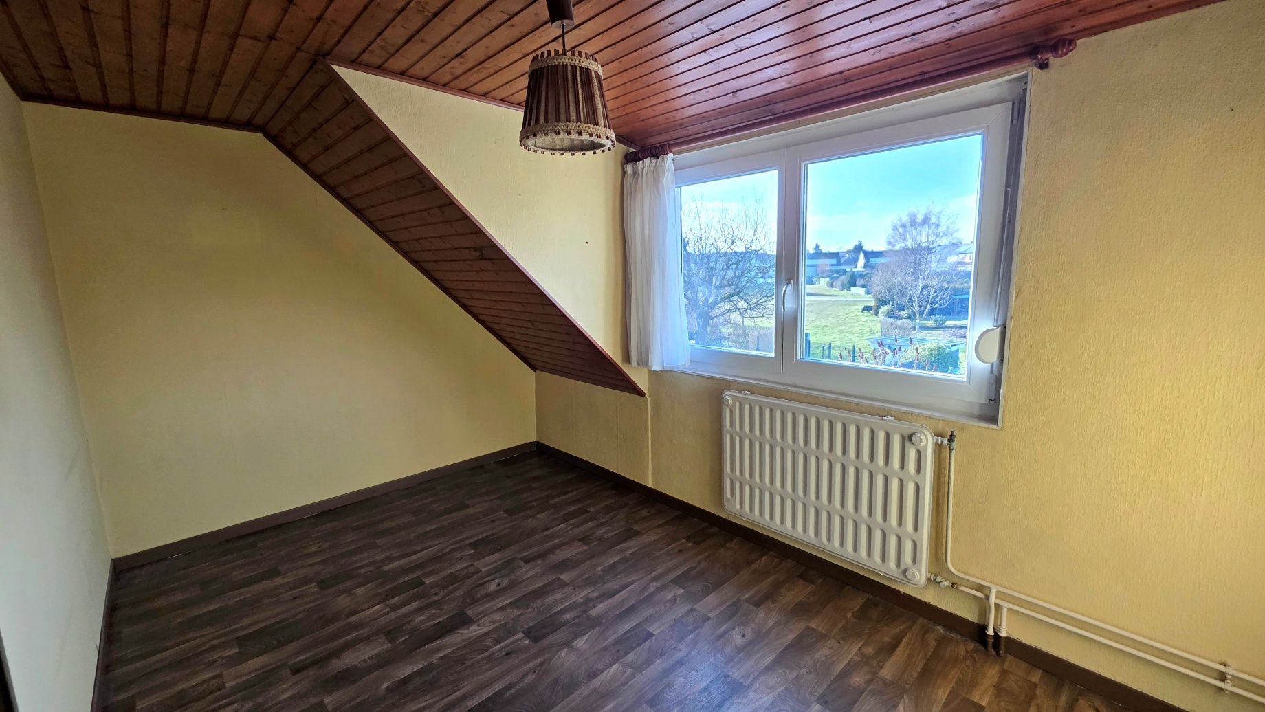 Chauffage individuel au gaz, double vitrage PVC, installation électrique à revoir.
